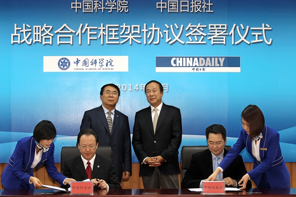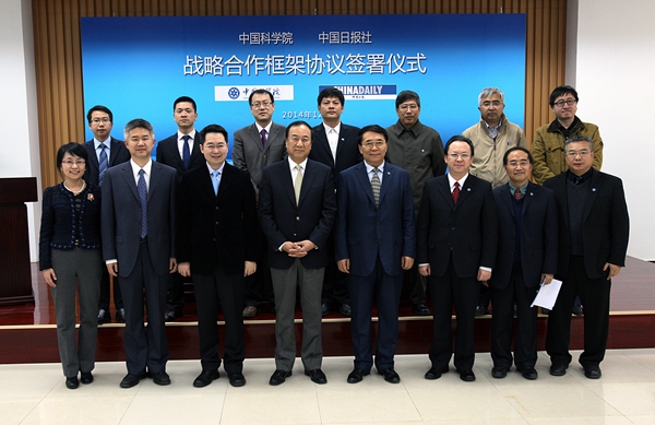 12月1日,中國科學(xué)院與中國日?qǐng)?bào)社在北京簽署戰(zhàn)略合作框架協(xié)議。中國科學(xué)院院長(zhǎng)、黨組書記白春禮,中國日?qǐng)?bào)社社長(zhǎng)朱靈出席了儀式,中國科學(xué)院副秘書長(zhǎng)譚鐵牛和中國日?qǐng)?bào)社副總編輯曲瑩璞簽署了戰(zhàn)略合作框架協(xié)議。