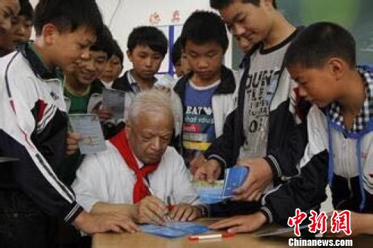 陸埮院士為青少年簽名 王思潮供圖 攝