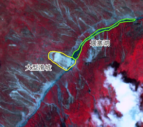 通過我國(guó)高分1號(hào)衛(wèi)星遙感數(shù)據(jù)解譯發(fā)現(xiàn)尼泊爾Rasuwa地區(qū)(沿中尼公路向我國(guó)吉隆口岸方向)發(fā)生大型滑坡導(dǎo)致河流堵塞形成堰塞湖