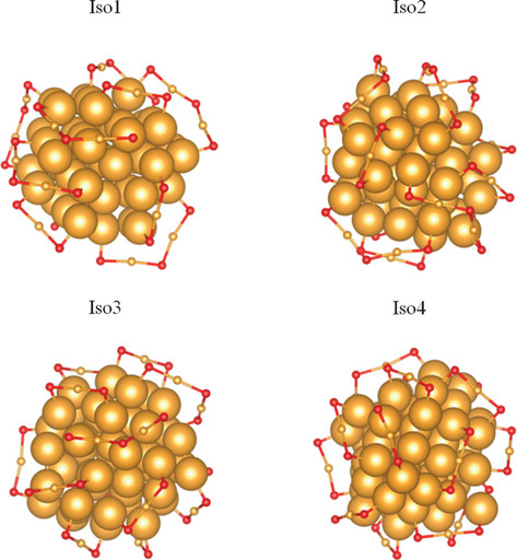 近年來(lái),由于自身獨(dú)特的物理化學(xué)性質(zhì)和在催化、納米及磁性材料等領(lǐng)域廣泛的應(yīng)用前景,巰基保護(hù)的金團(tuán)簇的結(jié)構(gòu)和性質(zhì)得到研究者的廣泛關(guān)注。美國(guó)斯坦福大學(xué)教授、2005年諾貝爾化學(xué)獎(jiǎng)得主Kornberg研究組利用單粒子透射電鏡方法實(shí)現(xiàn)技術(shù)突破,確定了巰基保護(hù)的金納米團(tuán)簇Au68(SH)32中金原子的坐標(biāo)(Science, 345, 909, 2014),而團(tuán)簇中硫原子的坐標(biāo)卻無(wú)法給出。上海和美國(guó)的研究小組通過(guò)理論計(jì)算表明金團(tuán)簇的穩(wěn)定結(jié)構(gòu)與實(shí)驗(yàn)結(jié)果內(nèi)核相一致,而表面的金原子卻存在差異。這可以歸因于單粒子透射電鏡的電子束改變了表面部分金原子位置,進(jìn)而對(duì)團(tuán)簇性質(zhì)造成影響。進(jìn)一步的理論研究表明,該團(tuán)簇可以作為良好的納米催化劑。該工作展示了理論能夠?yàn)閷?shí)驗(yàn)觀測(cè)提供支持,并更準(zhǔn)確地解釋實(shí)驗(yàn)現(xiàn)象。