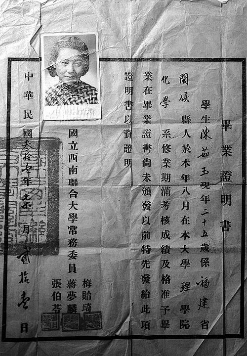 1942年陳茹玉在西南聯(lián)大畢業(yè)。