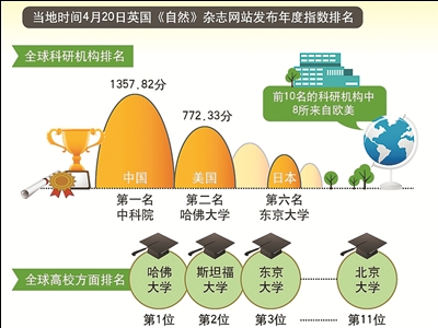 在全球高校排名方面,哈佛大學(xué)、斯坦福大學(xué)和東京大學(xué)位居前三,北京大學(xué)排在第11位,在中國(guó)高校中排名最高。此外,南京大學(xué)(全球第20位)、清華大學(xué)(全球第24位)、中國(guó)科學(xué)技術(shù)大學(xué)(全球第26位)、浙江大學(xué)(全球第37位)、復(fù)旦大學(xué)(全球第38位)和南開大學(xué)(全球第50位)也躋身全球大學(xué)50強(qiáng)。