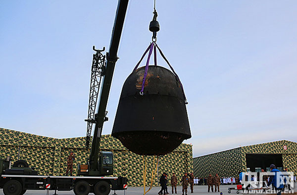 實(shí)踐十號衛(wèi)星返回艙轉(zhuǎn)運(yùn)到預(yù)定地點(diǎn)(黃光輝攝)