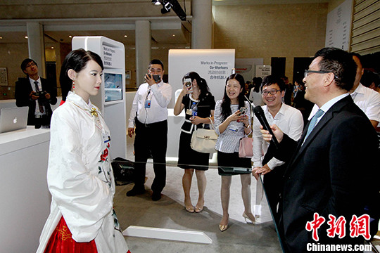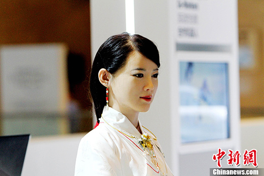 “佳佳”是一位高顏值機器人,由中國科學(xué)技術(shù)大學(xué)研發(fā),是中國首臺特有體驗交互機器人。在2016天津夏季達沃斯論壇上,“佳佳”甫一亮相,令人驚嘆。她身著傳統(tǒng)服飾,一頭秀麗的黑發(fā)挽成頗有古典意味的發(fā)型,再加上手如柔荑,膚如凝脂,觀者無不被其美貌折服。