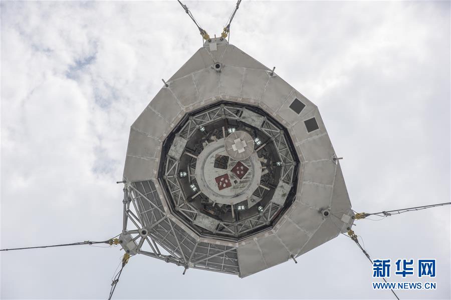 6索并聯(lián)驅(qū)動控制系統(tǒng)對饋源艙進行姿態(tài)調(diào)整(6月29日攝)。新華社記者 劉續(xù) 攝