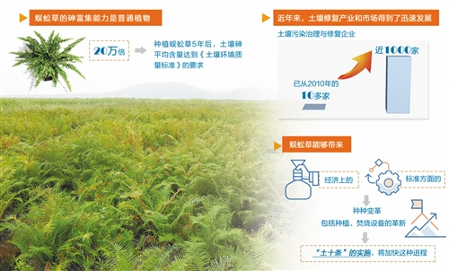 千萬(wàn)不要小看一棵草的“能量”。陳同斌認(rèn)為,蜈蚣草能夠帶來(lái)經(jīng)濟(jì)上的、標(biāo)準(zhǔn)方面的種種變革,包括種植、焚燒設(shè)備的革新。如今,“土十條”的實(shí)施,將加快這樣的進(jìn)程。