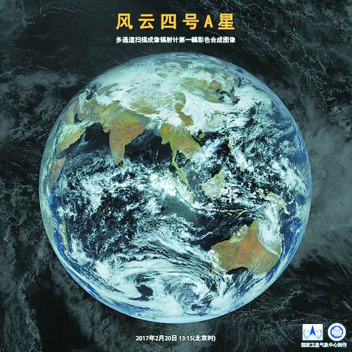 風(fēng)云四號(hào)A星第一幅彩色合成圖像。