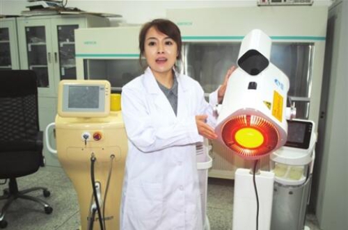 在該所的“半導體照明聯(lián)合創(chuàng)新國家重點實驗室光健康研究中心”,項目負責人、研究員崔錦江博士告訴記者,由她率領(lǐng)的團隊,經(jīng)過近兩年研發(fā)、推翻4種方案,終于研發(fā)出“深層光譜治療儀”。據(jù)崔錦江介紹,光學治療技術(shù),因其高能量、低功耗、無污染、靶向性強等特點已廣泛應用于臨床各學科?!八抢霉馀c人體組織的光物理、光化學、光機械、光磁等作用原理,為臨床慢性病、免疫性疾病以及惡性疾病治療輸入一種安全、無創(chuàng)、綠色的治療方法?!贝掊\江介紹,該技術(shù)需要非常強勁的光源,但又不能灼傷皮膚?,F(xiàn)有的光譜治療技術(shù)普遍存在能量低、治療深度淺、見效慢等缺點,限制了該治療方法的臨床研究和應用推廣。