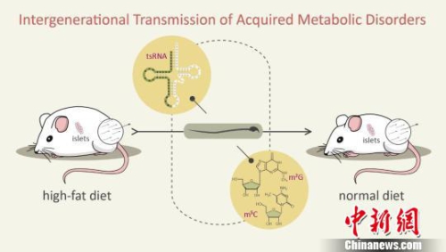 精子tsRNAs及其攜帶的RNA修飾將父代高脂飲食獲得的代謝紊亂性狀傳遞給子代。中國科協(xié) 供圖