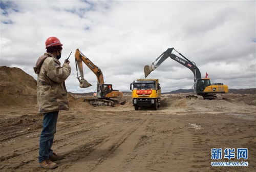 6月4日,在四川省稻城縣海子山高海拔宇宙線觀測站建設(shè)現(xiàn)場,工人們在施工。新華社記者 金立旺 攝