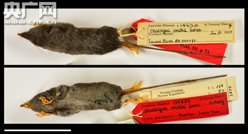 煙黑缺齒鼩(Chodsigoa furva)模式標(biāo)本,館藏于美國(guó)自然歷史博物館(紐約)