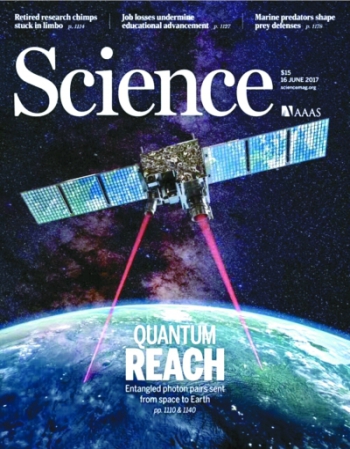 量子糾纏是奇特的量子力學(xué)現(xiàn)象。通俗地說,兩個(或多個)粒子共同組成的量子狀態(tài),粒子之間就像有心靈感應(yīng),無論相隔多遠(yuǎn),一個粒子變化,其他粒子也會改變,愛因斯坦稱之為“鬼魅般的超距作用”。但是,如何驗證量子糾纏在更遠(yuǎn)的距離上是否仍然存在?會不會受到引力等其他因素的影響?一直是科學(xué)家面對的難以逾越的難題。由于受地球環(huán)境與光纖通信質(zhì)量以及量子中繼器技術(shù)進(jìn)展的限制,潘建偉等中國科學(xué)家雖然從本世紀(jì)初以來多次創(chuàng)造量子糾纏分發(fā)的“世界紀(jì)錄”,但實驗水平也只停留在百公里的距離。