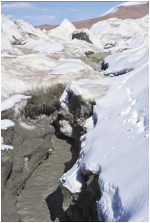 53號冰川冰崩后形成的河流。胡文濤攝