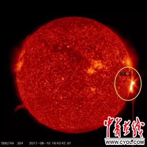 繼9月7日太陽爆發(fā)12年來最強耀斑(X9.3級)之后,9月10日深夜23時35分,太陽黑子群AR2673再次“發(fā)威”,爆發(fā)X8.2級耀斑,這是此次太陽爆發(fā)事件中的第二大耀斑。