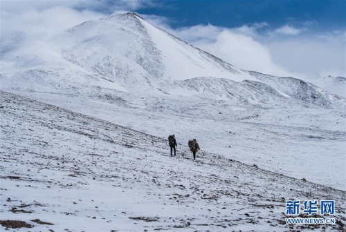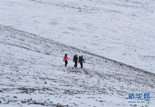 河湖源冰川與環(huán)境變化考察隊(duì)隊(duì)長、中科院青藏高原研究所研究員鄔光劍(中)等科考隊(duì)員徒步前往探索西藏阿里日土縣東汝鄉(xiāng)阿汝冰川(9月12日攝)。9月13日晚,在海拔5300多米的西藏阿里日土縣東汝鄉(xiāng)阿汝冰川前,豎起藍(lán)色的第二次青藏高原綜合科考隊(duì)旗幟。這標(biāo)志著第二次青藏高原綜合科學(xué)考察研究之河湖源冰川與環(huán)境變化考察在阿里地區(qū)正式啟動(dòng)。新華社記者 劉東君 攝