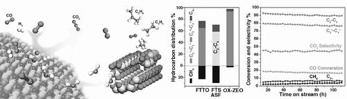 合成氣(CO和H2混合氣體)是煤、天然氣等碳資源轉(zhuǎn)化利用的重要平臺。上世紀二十年代,德國科學家發(fā)明了煤經(jīng)合成氣生產(chǎn)液體燃料的費托過程,是目前唯一有效的合成氣直接轉(zhuǎn)化制低碳烯烴的路徑。然而,該方法的缺陷是目標產(chǎn)物的選擇性低,比如C2-C4烴(含2個到4個碳原子數(shù)的烴類,包括烷烴和烯烴)在烴類中的選擇性不超過58%。2012年,C1化學領(lǐng)域的國際知名教授de Jong團隊通過對費托催化劑的組成和結(jié)構(gòu)進行優(yōu)化,取得了突破性進展,當轉(zhuǎn)化率為小于1.5%時,低碳烯烴選擇性達到了61%,轉(zhuǎn)化率達到88%時,低碳烯烴的選擇性仍高達52%。
