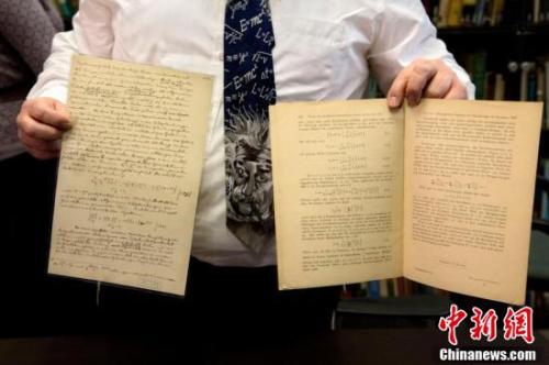 資料圖:希伯來大學的愛因斯坦檔案館館長Roni Gross展示愛因斯坦有關(guān)引力波的原始文件。
