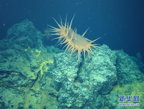 “蛟龍”號在天休熱液區(qū)發(fā)現棲息在海底硫化物上的???月23日攝)。新華社發(fā)
