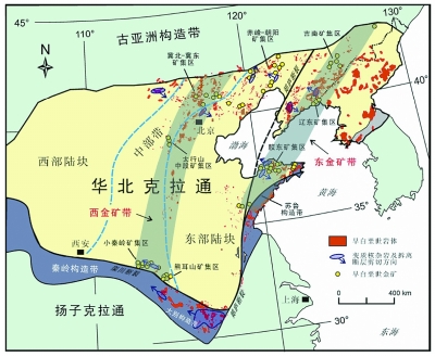 華北克拉通早白堊世主要金礦集區(qū)分布。圖片來自《中國科學:地球科學》雜志