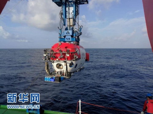 這是4月20日拍攝的載人深潛器“深海勇士”號執(zhí)行第一次下潛任務(wù)(資料照片)。新華社記者 施雨岑 攝