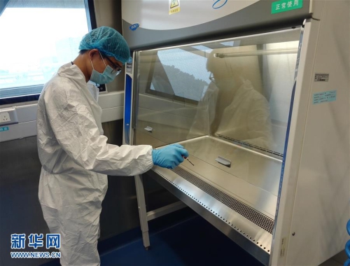 中國科學院武漢病毒研究所暖通設備工程師王亮在武漢P4實驗室測試設備(資料照片)。新華社發(fā)