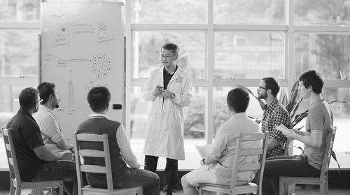 裴端卿與學(xué)生討論實(shí)驗(yàn)進(jìn)展。