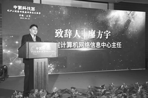 中科院計算機網(wǎng)絡(luò)信息中心主任廖方宇在中國科技云門戶上線發(fā)布儀式上致辭。