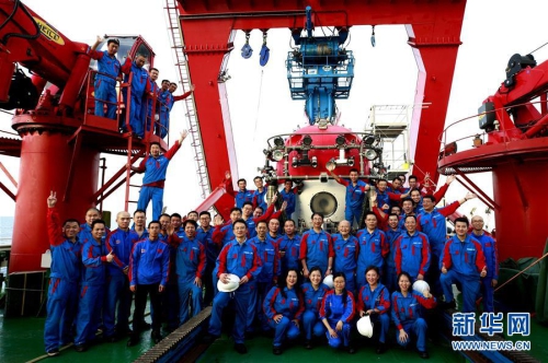 5月23日,“南海深部計(jì)劃”西沙深潛航次的部分考察隊(duì)員在“深海勇士”號(hào)前合影。