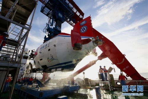 5月23日,“深海勇士”號(hào)完成西沙深潛航次的最后一次下潛任務(wù)回到母船。新華社記者 張建松 攝