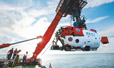 5月24日,我國(guó)“南海深部計(jì)劃”西沙深潛航次圓滿結(jié)束,來(lái)自全國(guó)14個(gè)單位60名考察隊(duì)員乘坐“探索一號(hào)”科考船返回三亞。在本航次中,我國(guó)科學(xué)家乘坐“深海勇士”號(hào)載人深潛器在南海首次發(fā)現(xiàn)“冷水珊瑚林”和新的冷泉活動(dòng)噴口。圖為5月23日,“深海勇士”號(hào)完成西沙深潛航次的最后一次下潛任務(wù)回到母船。