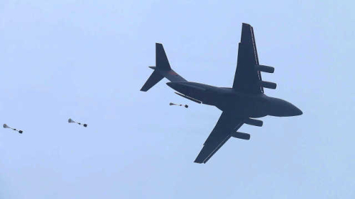中國空軍大型運(yùn)輸機(jī)運(yùn)-20與空降兵部隊(duì)聯(lián)合開展空降空投訓(xùn)練(資料照片)。新華社發(fā)