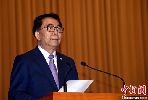 白春禮代表學部主席團做工作報告。中新社記者 孫自法 攝