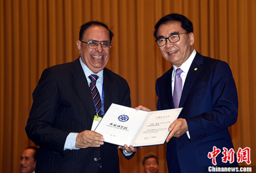 當天的院士大會全體會議上,白春禮還向來自美國、英國、俄羅斯、日本、巴基斯坦、芬蘭、波蘭等國13位近年來新當選的中科院外籍院士,一一頒授中科院院士證書和徽章。