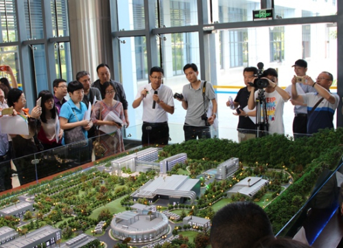 中科院高能物理研究所副所長陳延偉向記者介紹散裂中子源情況。(曹昆 攝)