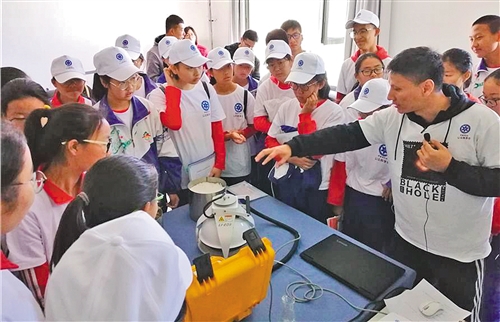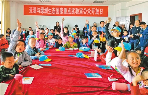 新疆生地所荒漠與綠洲生態(tài)國(guó)家重點(diǎn)實(shí)驗(yàn)室里,孩子們?cè)隈雎?tīng)科普講座,踴躍回答提問(wèn)。
