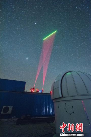 延時攝影下的阿里地面站望遠(yuǎn)鏡,用于與“墨子號”進(jìn)行量子通信。中科大/供圖