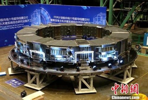 9月20日,總重高達400噸,相當于兩架波音747飛機重量的國際熱核聚變實驗堆(ITER)計劃首個大型超導磁體線圈——極向場6號線圈(PF6線圈)在安徽合肥竣工交付,將通過海運方式運送至法國ITER現(xiàn)場。中新社發(fā) 王天昊 攝