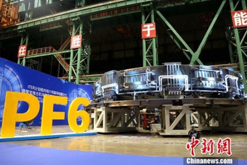 由中國科學院等離子體物理研究所研制的PF6線圈,位于ITER實驗堆超導磁體的底部,總重高達400噸。該線圈繞制所采用的鈮鈦超導導體長約13.5公里,繞制完成的線圈主體外徑約11.2米,外形相似中國古代的和氏璧。