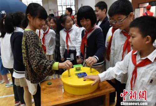 圖為孩子們在活動(dòng)現(xiàn)場進(jìn)行“觸電”體驗(yàn)。周毅 攝