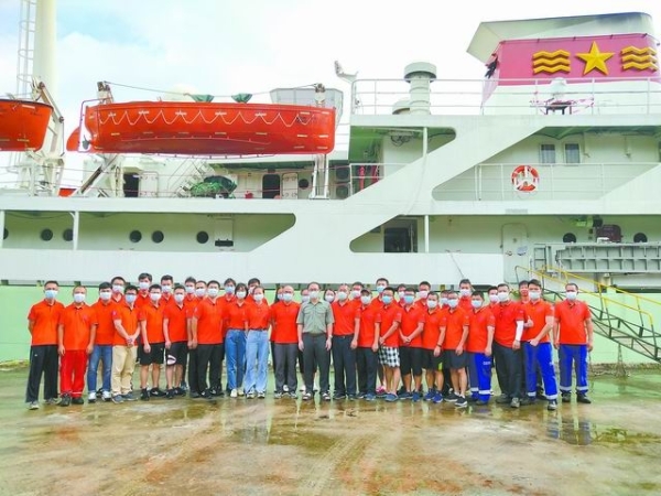 執(zhí)行2020年東印度洋綜合科學(xué)考察共享航次有關(guān)人員合影。禤礎(chǔ)茵攝