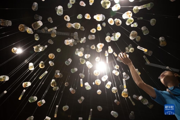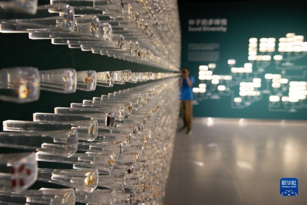 10月10日,在舉行發(fā)布會的中科院生物多樣性成果展現(xiàn)場,“種子圣殿”展墻展示種子多樣性。