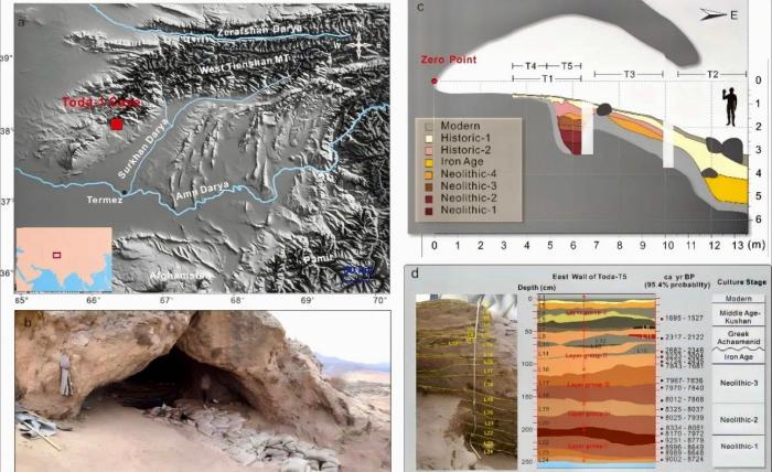 近年來,國際合作研究團隊在烏茲別克斯坦南部的山麓地區(qū)開展田野調(diào)查,發(fā)現(xiàn)托達1號洞穴,并經(jīng)過2017–2019年三個季度的發(fā)掘,揭露出新石器時代早期的文化層。