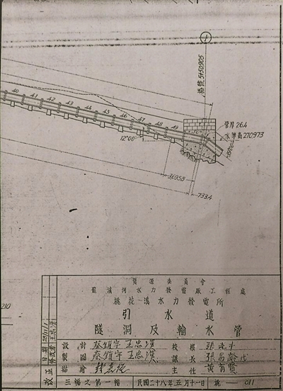 水利水電專家張光斗校核的桃花溪水電站設計圖。