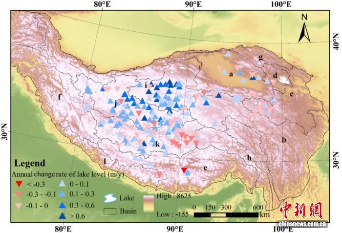 青藏高原湖泊水位時(shí)空變化分布。研究團(tuán)隊(duì) 供圖