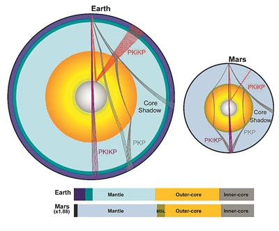 地球(左)和火星(右)深部結(jié)構(gòu)對(duì)比示意圖。受訪單位供圖