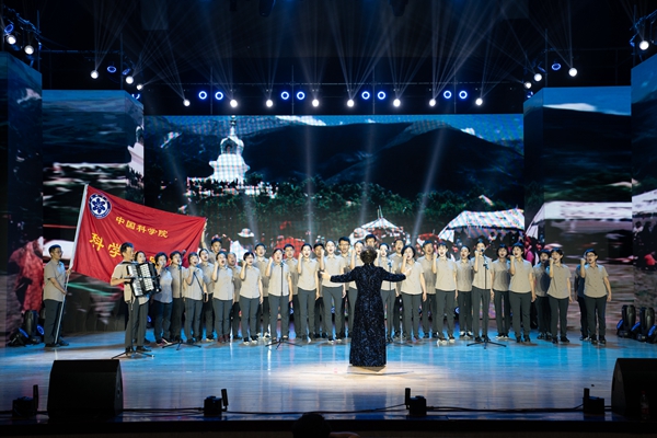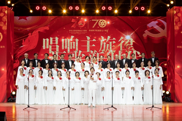 來自北京分院十余家單位的十五個(gè)節(jié)目精彩紛呈,情景舞劇、混聲合唱、群口相聲、詩歌朗誦等節(jié)目形式多樣,內(nèi)容豐富,充分展現(xiàn)出中科院廣大科技工作者的精神面貌和別樣風(fēng)采。節(jié)目或緬懷前輩愛國情操,或歌頌創(chuàng)新奮斗精神,或抒發(fā)科技報(bào)國情懷。身在超凈實(shí)驗(yàn)室、試驗(yàn)場(chǎng)站、野外基地、南海之濱、青藏冰川河源等地的科研團(tuán)隊(duì)發(fā)來場(chǎng)外祝福視頻,齊聲祝福中科院生日快樂,祝愿祖國繁榮富強(qiáng)。伴隨著陣陣掌聲和歡呼聲,觀眾們手舞五星紅旗,起身一起合唱《我和我的祖國》。
