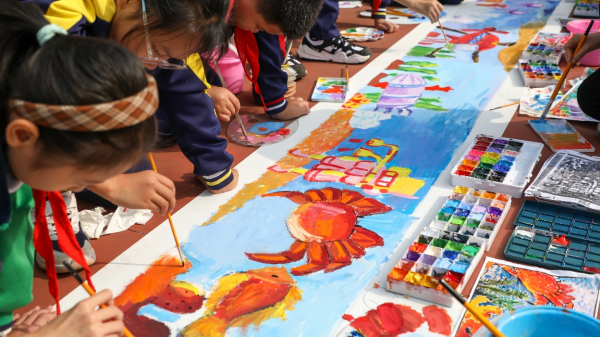 10月16日,中國科學(xué)院海洋研究所、青島市教育局、青島市科技局聯(lián)合舉辦2024年青島市中小學(xué)海洋節(jié)“我心目中的海洋”主題繪畫活動,來自青島各市區(qū)的120余名中小學(xué)生在百米長卷上現(xiàn)場作畫,共繪心目中的藍色海洋。
