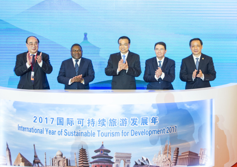 李克強(qiáng)還與各國(guó)領(lǐng)導(dǎo)人共同出席“2017國(guó)際可持續(xù)旅游發(fā)展年”啟動(dòng)儀式。