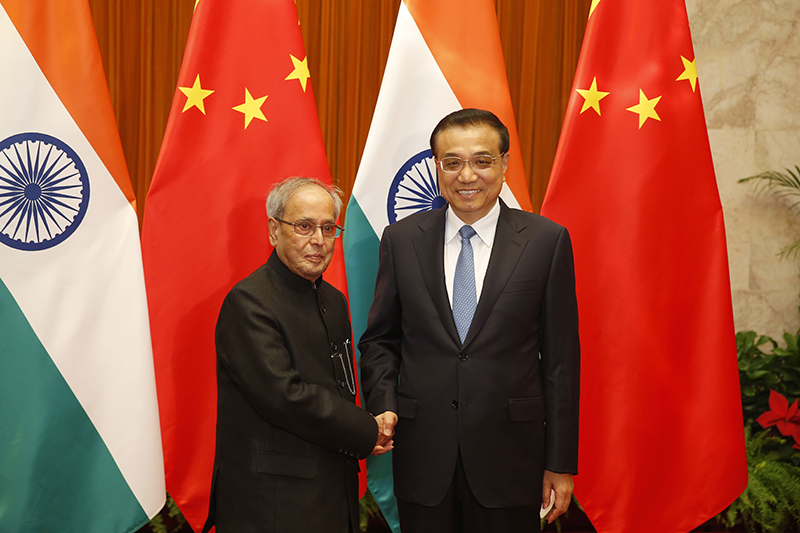 國(guó)務(wù)院總理李克強(qiáng)5月26日下午在人民大會(huì)堂會(huì)見(jiàn)來(lái)華進(jìn)行國(guó)事訪問(wèn)的印度總統(tǒng)慕克吉。