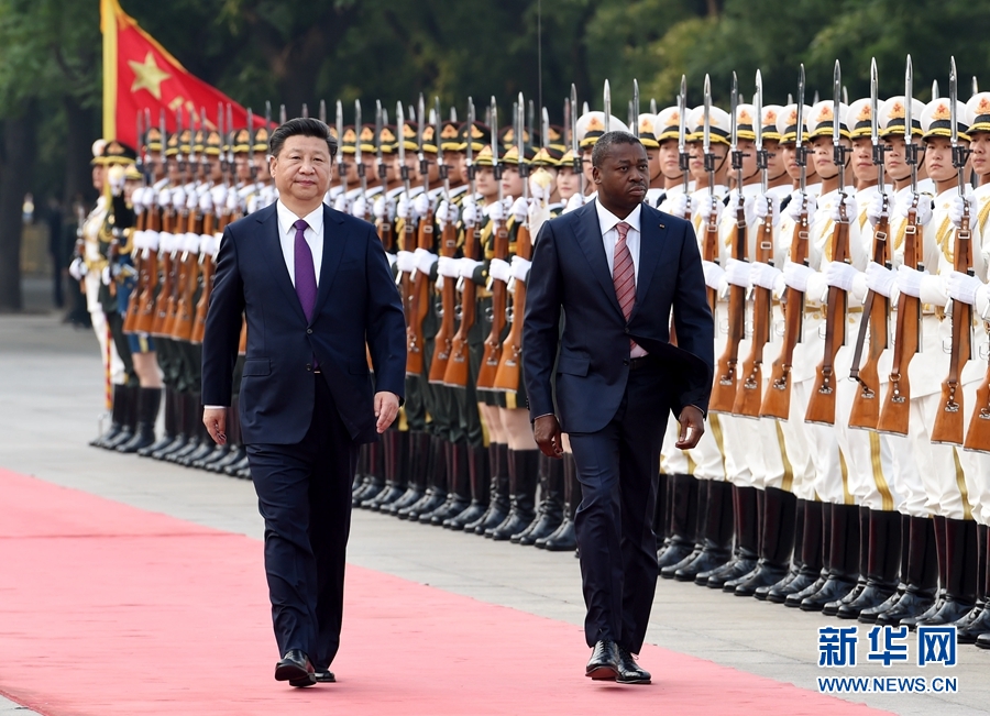 5月30日,國家主席習(xí)近平在北京人民大會堂同多哥總統(tǒng)福雷舉行會談。這是會談前,習(xí)近平在人民大會堂東門外廣場為福雷舉行歡迎儀式。新華社記者 饒愛民攝